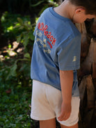 Bring coastal vibes to your boy's wardrobe with the Surf Team Tee in Blue Smoke. Crafted from soft 100% cotton (180gsm), this classic-fit tee captures authentic Australian surf culture with effortless style. Sized by age for the perfect fit, it's an ideal everyday piece for young surfers and beach lovers alike.