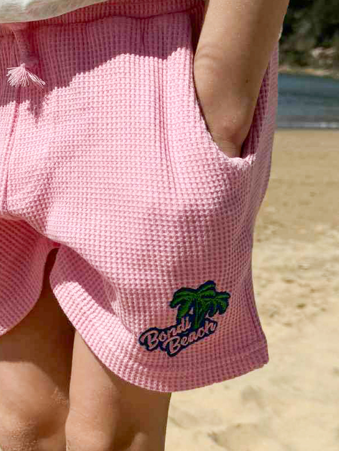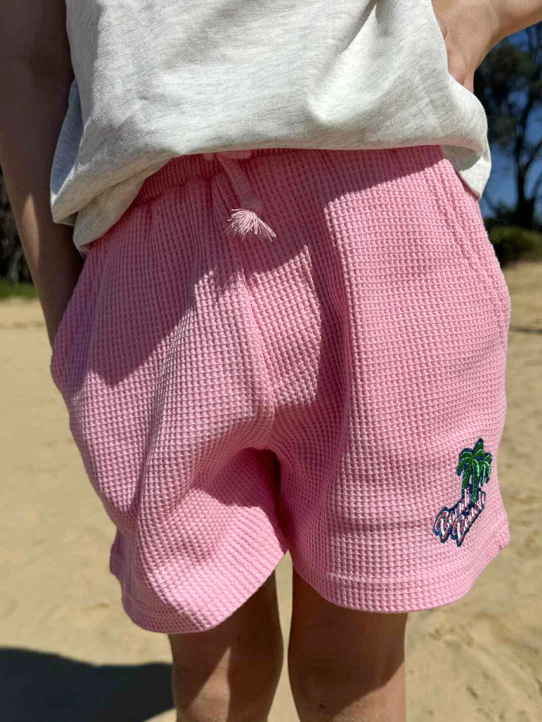 Women's Palm Waffle Shorts (Strawberry Milk)